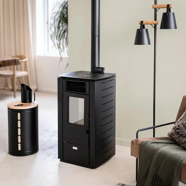 La estufa de pellets Equation Hella es una opción ideal para calentar espacios de hasta 70 m². Con una potencia de 7 kW y un rendimiento del 88%, esta estufa es altamente eficiente y permite un significativo ahorro de energía. Su panel de control permite ajustar la temperatura en modo Eco y programar el funcionamiento semanal para adaptarse a tus necesidades energéticas.